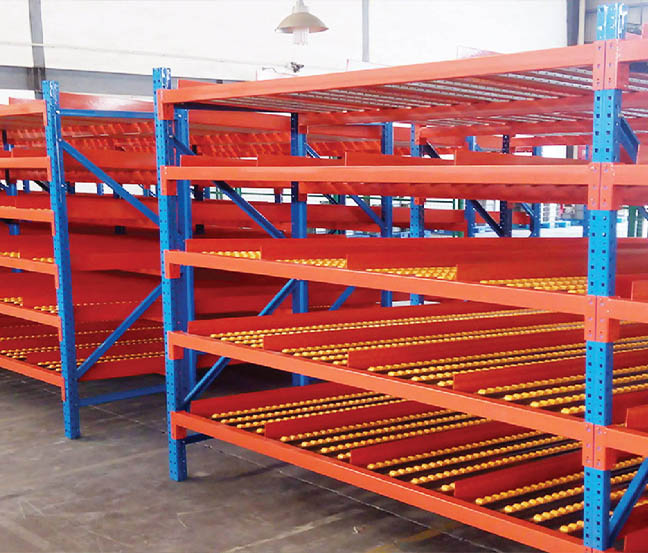 Roller-based racks ensure First-In-First-Out inventory flow—ideal for manufacturing and assembly line inputs. Improves stock rotation and picking speed.